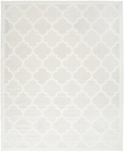 Ground your indoor or outdoor seating area in the stylish appeal of this outdoor rug from the Easy Care Collection. With a white backdrop that showcases multiple flatweave styles, enhanced by a raised Moroccan trellis pattern in ivory, this contemporary rug adds an appealing sense of depth to your surroundings. Place it in your living room, dining room, entryway, or favorite outdoor space such as the patio, porch, or deck for an instant style boost. Machine-made from durable, low-shed fibers that are easy to clean, making this a great choice for all seasons spent outdoors.