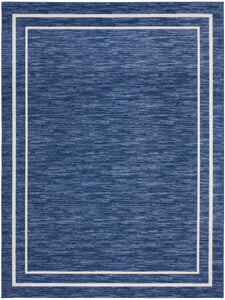 Add color and definition to your patio conversation space or indoor area with this contemporary navy-blue outdoor rug from the Nourison Essentials Collection. The double bordered rug design is made with softly textured, low-profile polypropylene yarns that stand up to heavy foot traffic. An ideal choice for busy households, this kid and pet-friendly rug does not shed and cleans up easily: hose-rinse spills and air-dry. To extend the life of your rug, bring it inside during extreme weather.