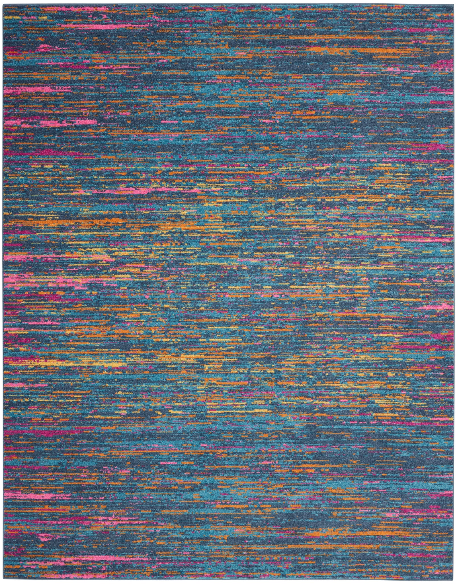 Like a vista from another planet, this exciting abstract area rug visibly pulsates with colorful energy in sweeping striations across its soft, plush pile. A vivid astral palette with celestial blue, fuchsia and gold is seductively enthralling. Superbly modern in 100% polypropylene fibers with serged edge.