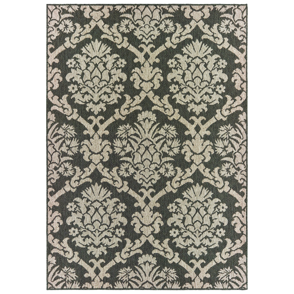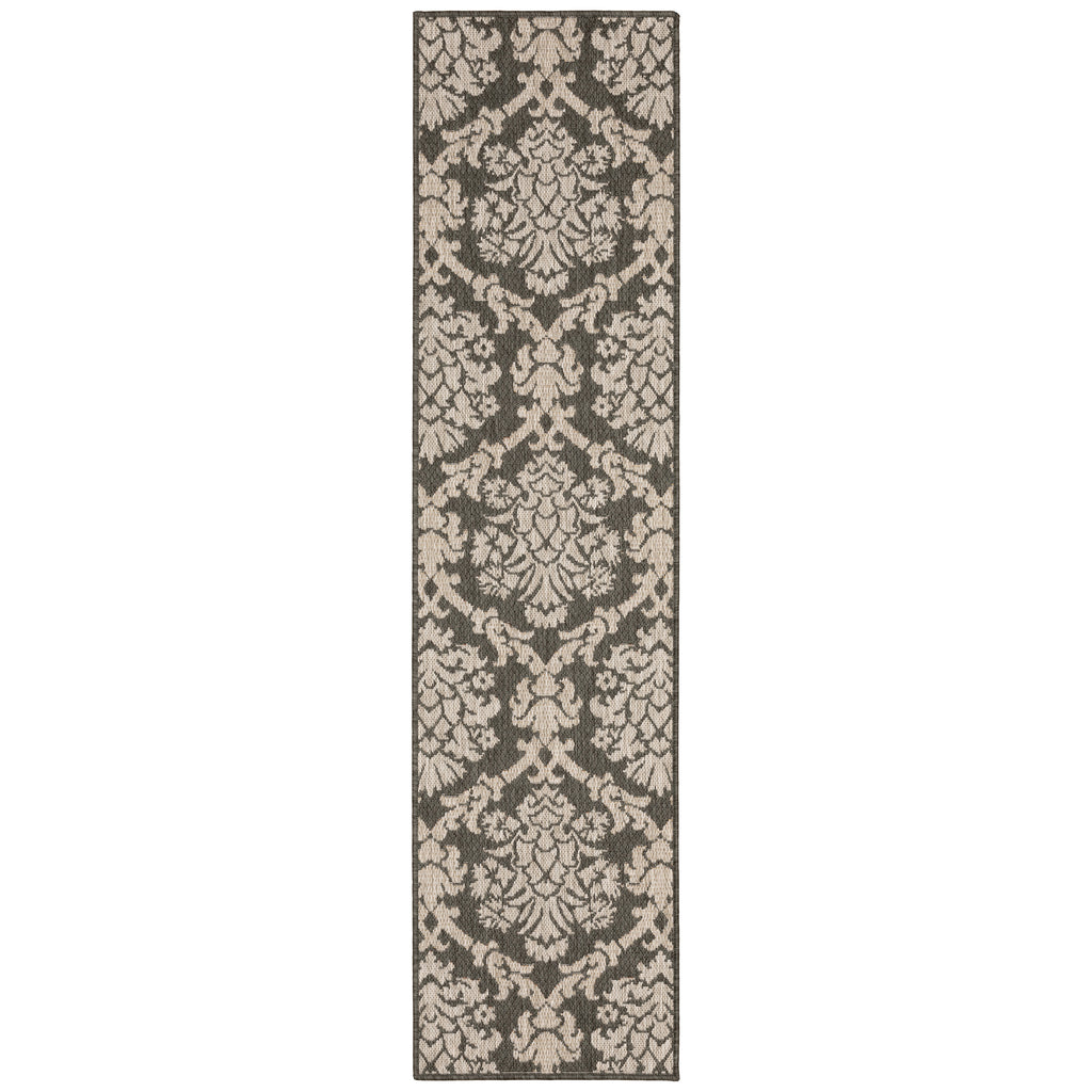The Latitude collection showcases sophisticated designs ranging from traditional tile and medallion patterns to simple modern borders and geometrics. Multi-colored yarns in neutral grays, accented by tones of deep navy and vibrant persimmon, add texture and a pop of color underfoot. Machine-woven of polypropylene, Latitude is easy to care for and can be used both indoors and out.